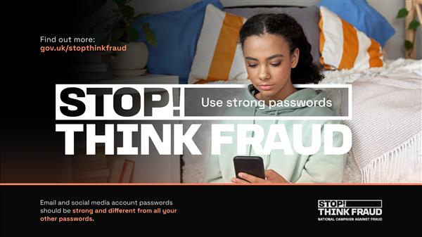 Don't make life easy for cyber criminals Create strong passwords using Three Random Word Don’t use the same password for different accounts For out more: Improve your password security - Stop! Think Fraud | ||