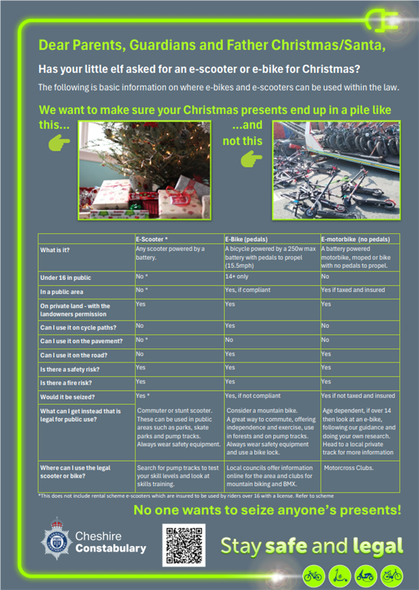 🎄 📜 We understand that many parents/guardians/carers/Father Christmas/Santa are looking at Christmas lists and the request for e-bikes 🚲 and e-scooters 🛴 and are coming in at the top.